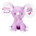 Naš prikupen uhasti slonček v roza barvi je visok 30 cm in je narejen iz nežnega kratkega pliša . Svoj napis lahko dodate tako na desni, kot na levi uhelj in ga tako spremenite v unikatno igračko. Slonček po svetu ponosno nosi svojo veliko ušeso v navihano maho s svojim repom , ki ga skriva na hrbtu.