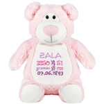 Klasičen pastelno roza medvedek je najpogostejše darilo za male deklice. Nežen pliš je idealen za cartanje in objeme.