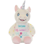Kdo pravi, da samorogi živijo samo v pravljicah? Mi že ne! Naš čarobni samorog Aurora je posut s mavričnimi pikami, ima rožnato grivo in repek, ter svetleč rog. Narejena je iz mehkega in daljšega belega pliša. Na svojem trebuščku pa ima prostor za vaš unikatni napis ali podatke o rojstvu vašega novorojenčka.